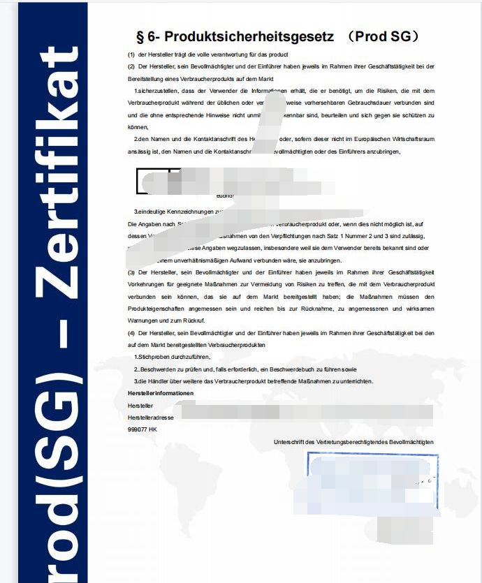 2011年12月1日,德國新《產(chǎn)品安全法案》(ProdSG)正式生效,是GS標志認證的依據(jù),替換先前的GPSG。